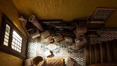 HOME is an art video recorded inside a fragmented miniature space of a diorama. In the video, this space appears as a compact and idyllic whole with a breath of warmth and coziness of a sunshine-flooded home. However, in reality, this is a cluster of small, broken, dissected walls and facades alike those that the artist uses in her animated puppet films. Besides highlighting the indexicality of the filmic space, this work reflects on the idea that home (for this author) is not a fixed place and a stronghold, but an illusionistic hideaway, where the fragmented space of the miniature holds such attributes as a fragile feeling of security.